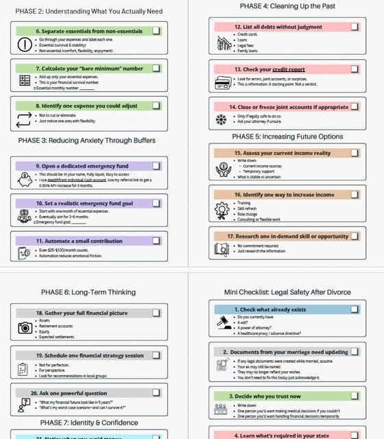 I created this after my own divorce, when every financial decision felt urgent at the same time and there was no clear place to start.