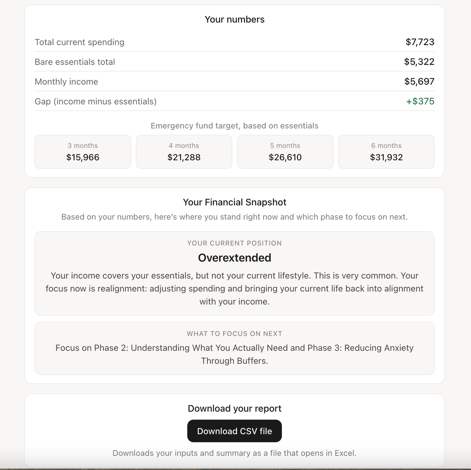 ✓ Know your real monthly survival number (bare minimum calculator included).